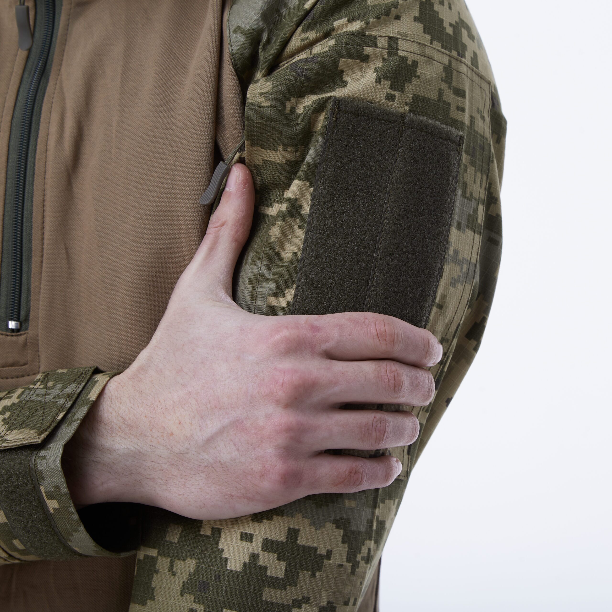 Тканина основи ARNO (40% нейлон 52% бавовна 8% лайкра) створена для надання максимального комфорту при екстримальних навантаженнях з технологією Nilit Breeze (охолоджуючий ефект) підвищена довговічність в взаємодії з спорядженням Технологія Odor Management (контроль запахів) тканина на рукавах ріпстоп піксель